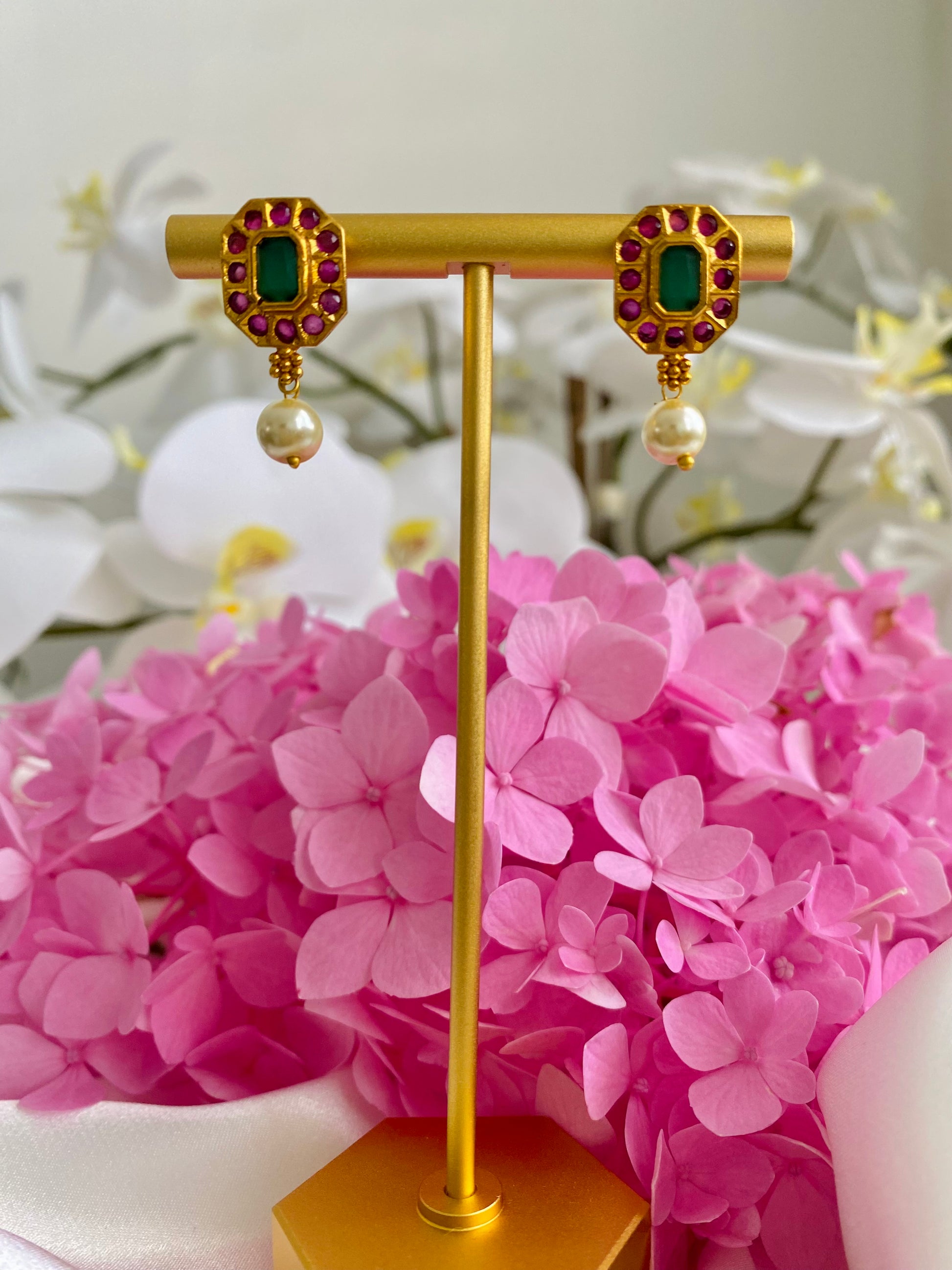 Look stunning in this beautiful antique necklace set made with semi precious gemstones that flaunts your traditional side.